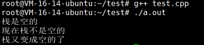 std::cout << "栈是空的" << std::endl; // 会执行这里