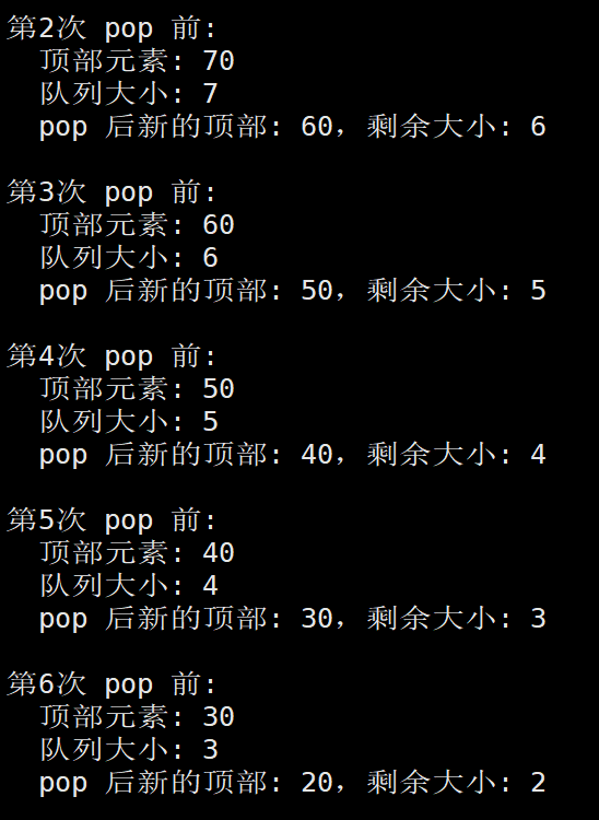 std::cout << "第" << count << "次 pop 前:" << std::endl;