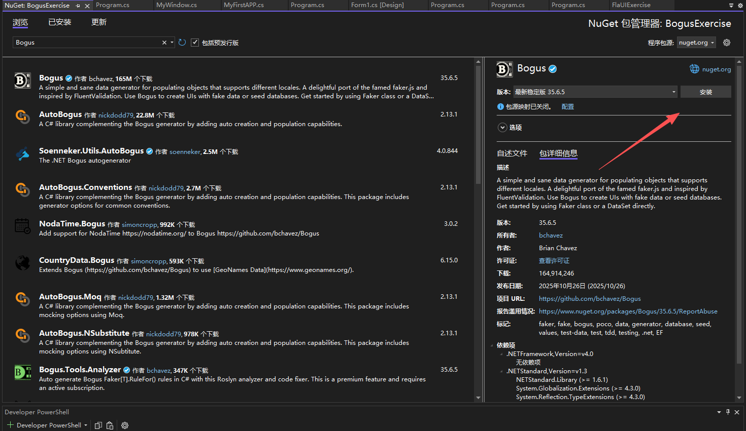 接下来我们创建一个名为:BogusExercise .NET 9 控制台应用: