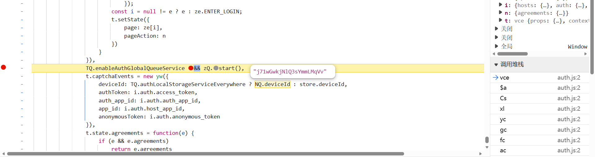 向上跟栈到下图处,此时 NQ.deviceId 即 device_id 参数的值: