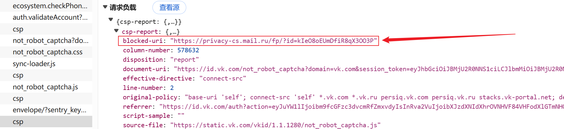 blocked-uri 中的接口在首页 vk.com 生成二维码时就会触发,因此该值需要在首页调试,否则都是从封装的 IndexedDB 中取已存储的值,无法定位生成逻辑。