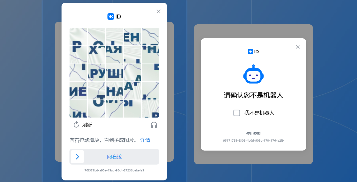 打开网址,选择邮箱登录,随便输入一个未注册的邮箱号,比如 aaw2,方便触发风控验证。输入完点登录会重定向到新的登录页面,重新输入,正常会显示 账号未找到,多点几次就会触发风控,登录有两种验证,如下图所示,分别为一点即过的和滑动拼图,这拼图人都不好滑对: