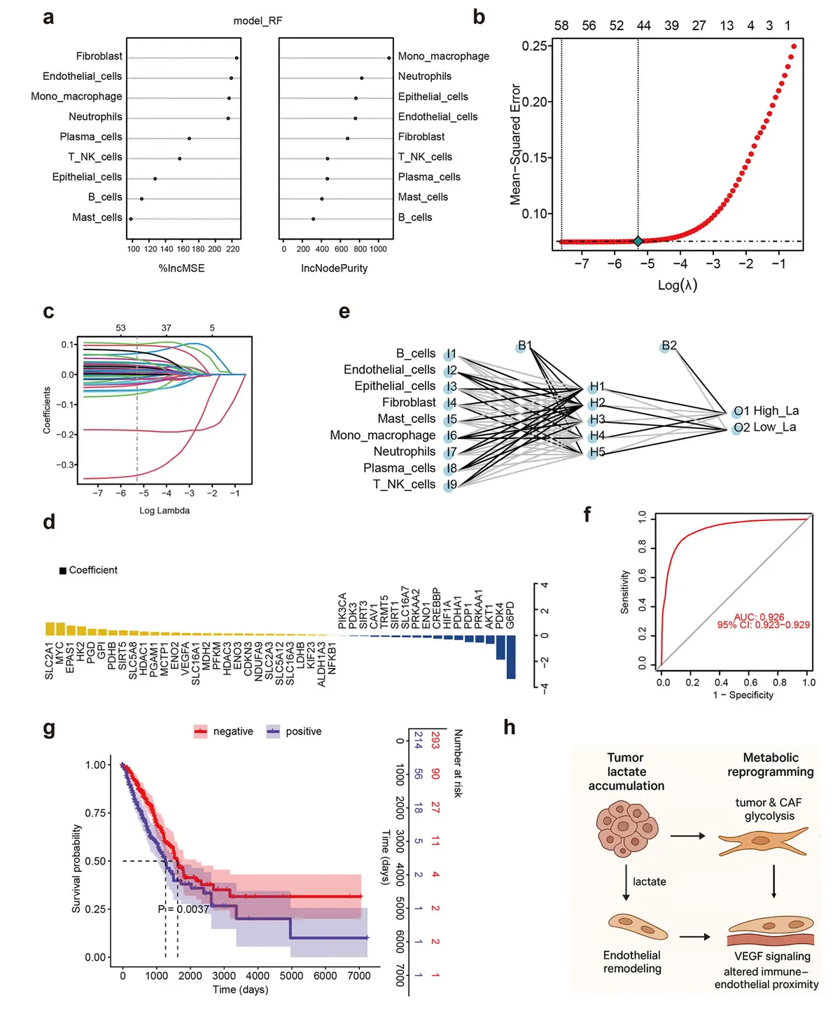 结果9、机器学习模型揭示基质-内皮细胞对乳酸富集状态的决定作用及其预后关联