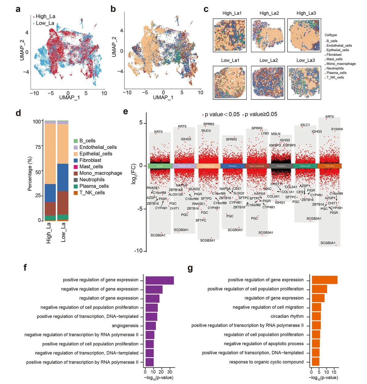 空间转录组研究结果表明,肺腺癌中升高的乳酸水平通过调控多种细胞类型的分布、转录程序及功能状态,重塑了肿瘤生态系统,从而可能促进肿瘤进展、免疫逃逸及治疗抵抗。