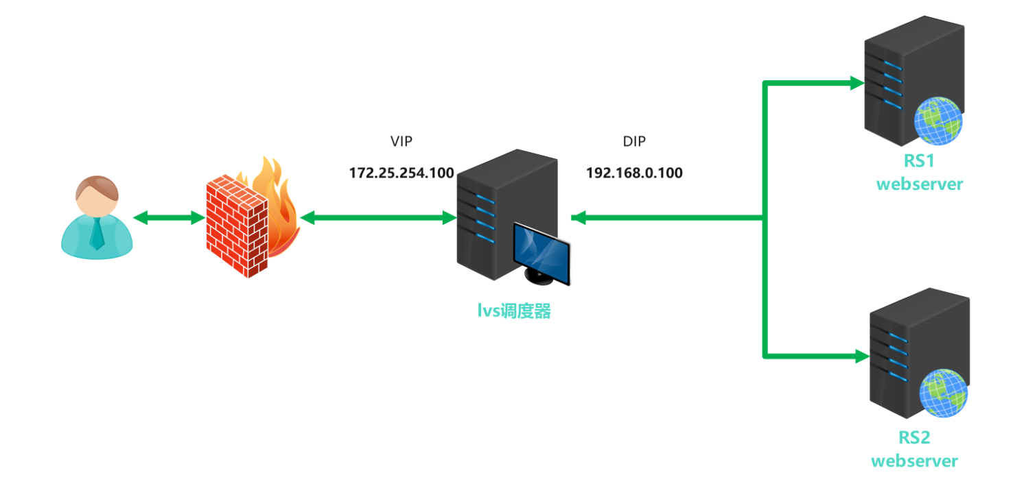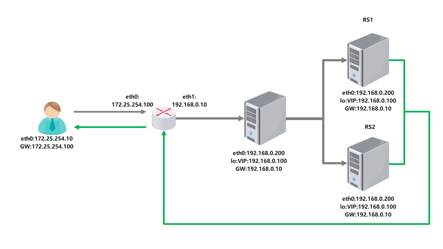 RIP和DIP应在同一个网络,且使用私网地址;RS的网关要指向DIP