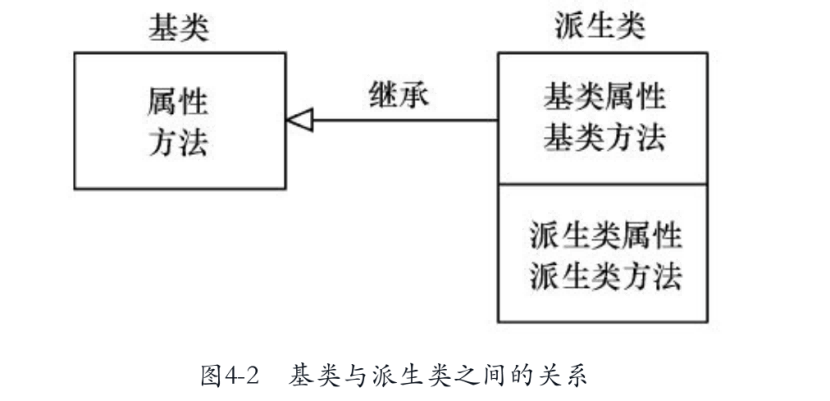 通过继承,基类中的所有成员(构造函数和析构函数除外)被派生类继承,成为派生类成员。在此基础上,派生类还可以增加新的成员。基类和派生类之间的关系如图4-2所示。