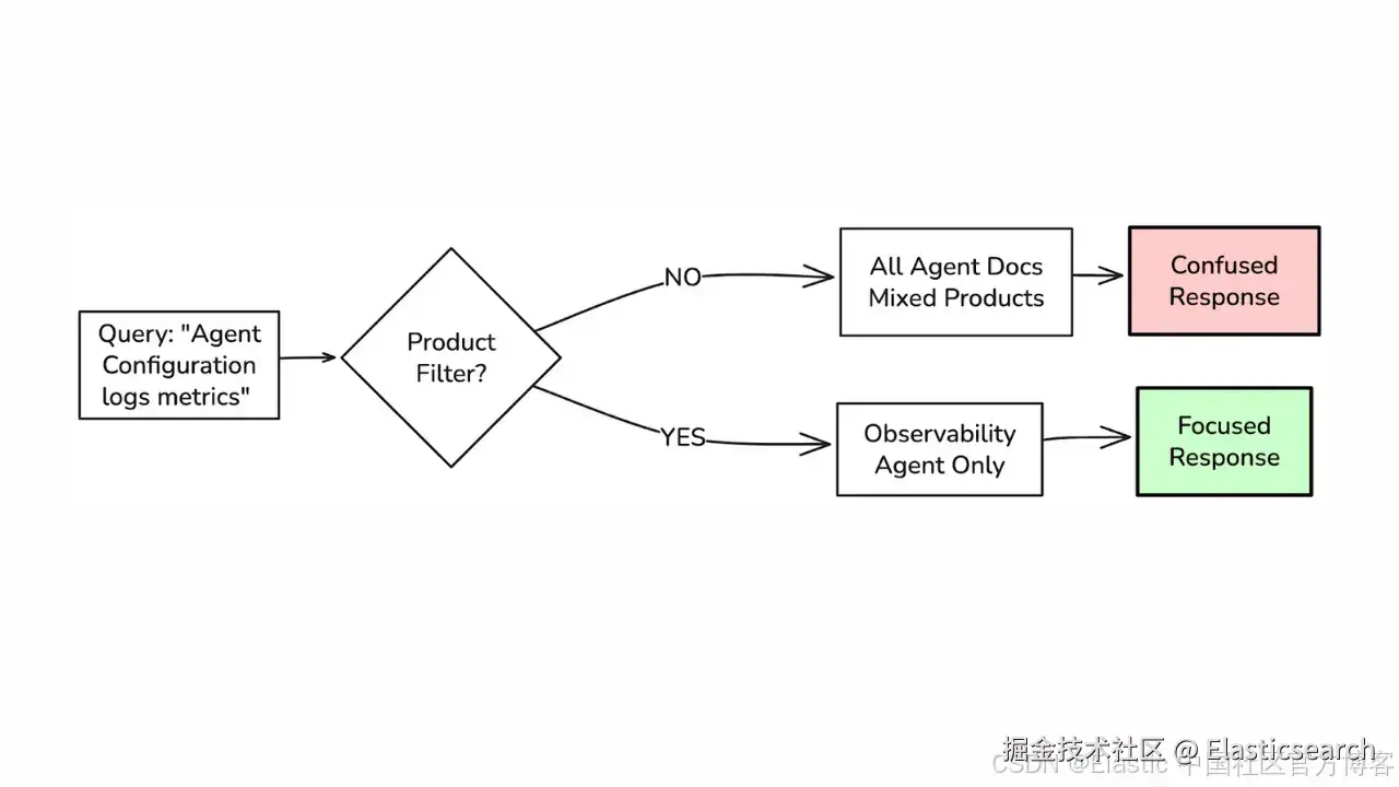 - 向量相似搜索可能检索到语义相关但上下文无关的文档。在将结果送入 LLM 前,对 product、category 或 domain 字段应用显式过滤,将结果约束到合适的上下文。详细信息请参考 [生产环境中的 RAG 流水线:将你的 GenAI 项目落地 - Elasticsearch Labs]。