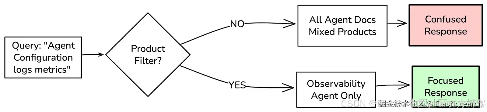 - 类别过滤器将结果限制在 "observability" 和 "elastic-agent" 域,消除向其他域的语义漂移。