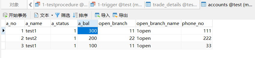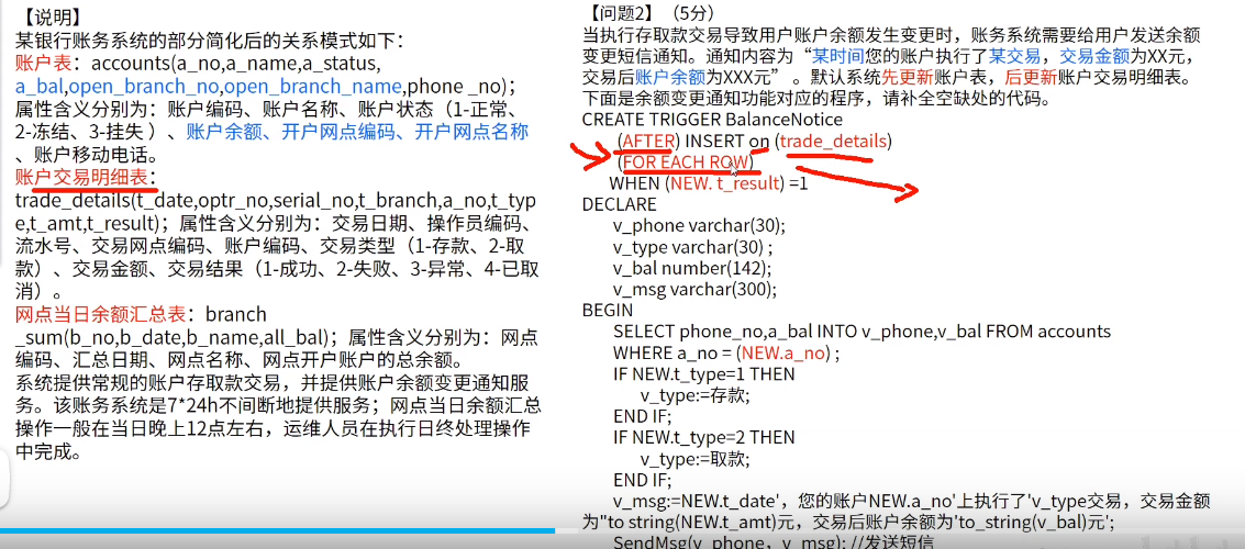 set v_msg =concat(new.t_date,'你的账户',new.a_no,'上执行了',v_type,'交易,存款金额:',new.t_amt,',账号余额为: ',v_bal);