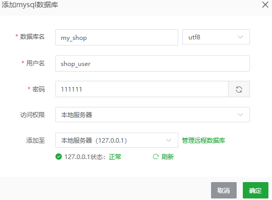 这里注意:如果你的数据库名为my_shop, 你填写前缀的时候应该填my_,数据库名为my_shop