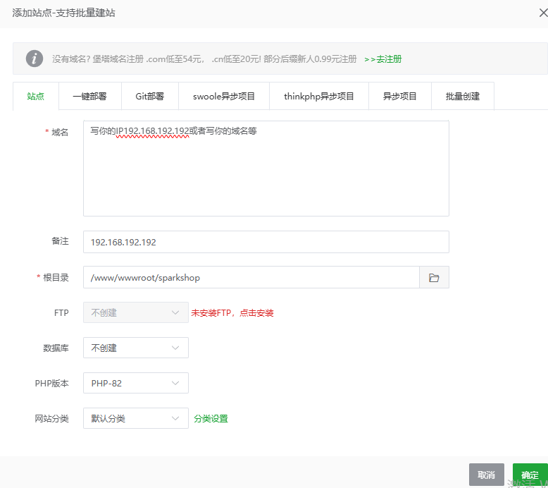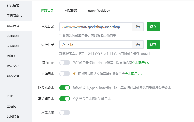上面的根目录应该设置成/www/wwwroot/sparkshop/sparkshop
