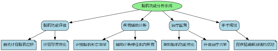 膈肌位于胸腔和腹腔之间,是主要的呼吸肌。膈肌功能障碍会导致多种呼吸系统疾病,如膈肌麻痹、膈肌抬高、膈肌疝等。传统评估方法包括肺功能测试、X线检查等,但这些方法存在一定局限性。