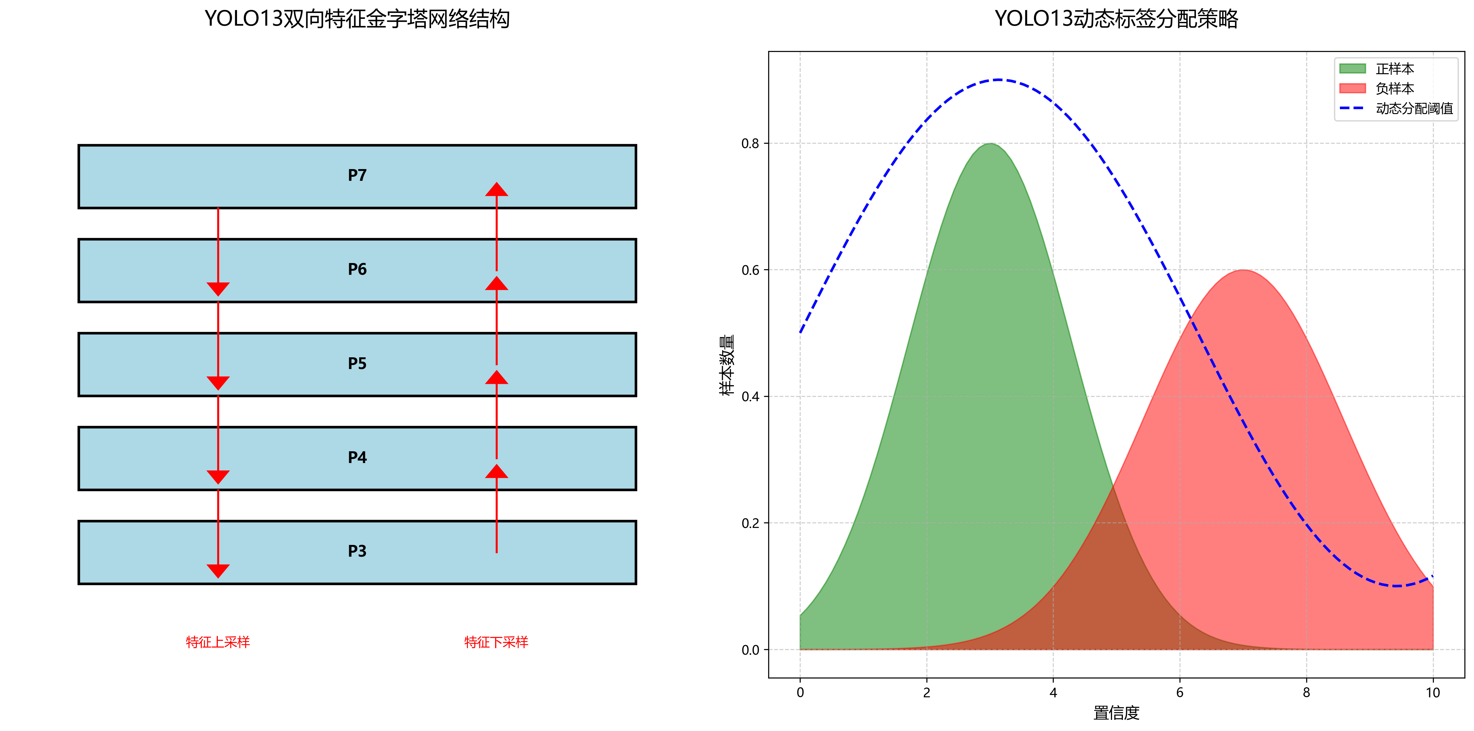 YOLO13的核心创新点在于其新的特征金字塔网络(FPN)结构,采用双向特征融合策略,能够更好地捕捉不同尺度的目标信息。同时,YOLO13引入了动态标签分配策略,解决了传统方法中正负样本不平衡的问题。