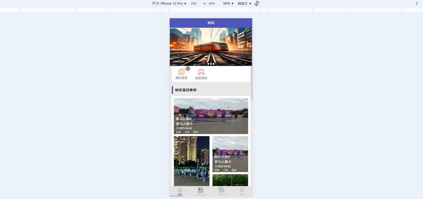 - 个性化推荐创新:引入协同过滤推荐算法,基于居民历史浏览、收藏、活动参与等行为数据,推送贴合其兴趣偏好的娱乐项目,解决 "居民找娱乐项目繁琐" 的痛点,提升用户体验。