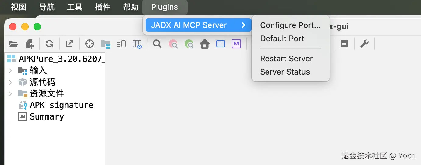 越来越多的工具都出了 mcp 工具,jadx 也不例外,今天带来 jadx mcp 的安装过程,可以用 cursor / claude 来帮我们逆向分析 apk 啦。 我是 mac 系统,这里仅介绍 mac 系统下的安装
