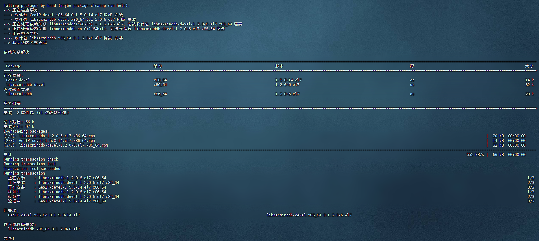 yum install -y geoip-devel libmaxminddb-devel