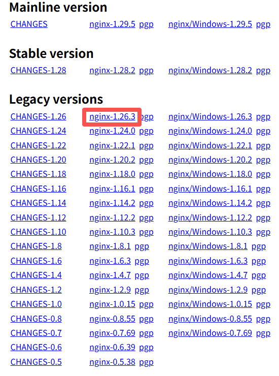 选择适合的版本下载,本文以nginx-1.26.3为例。