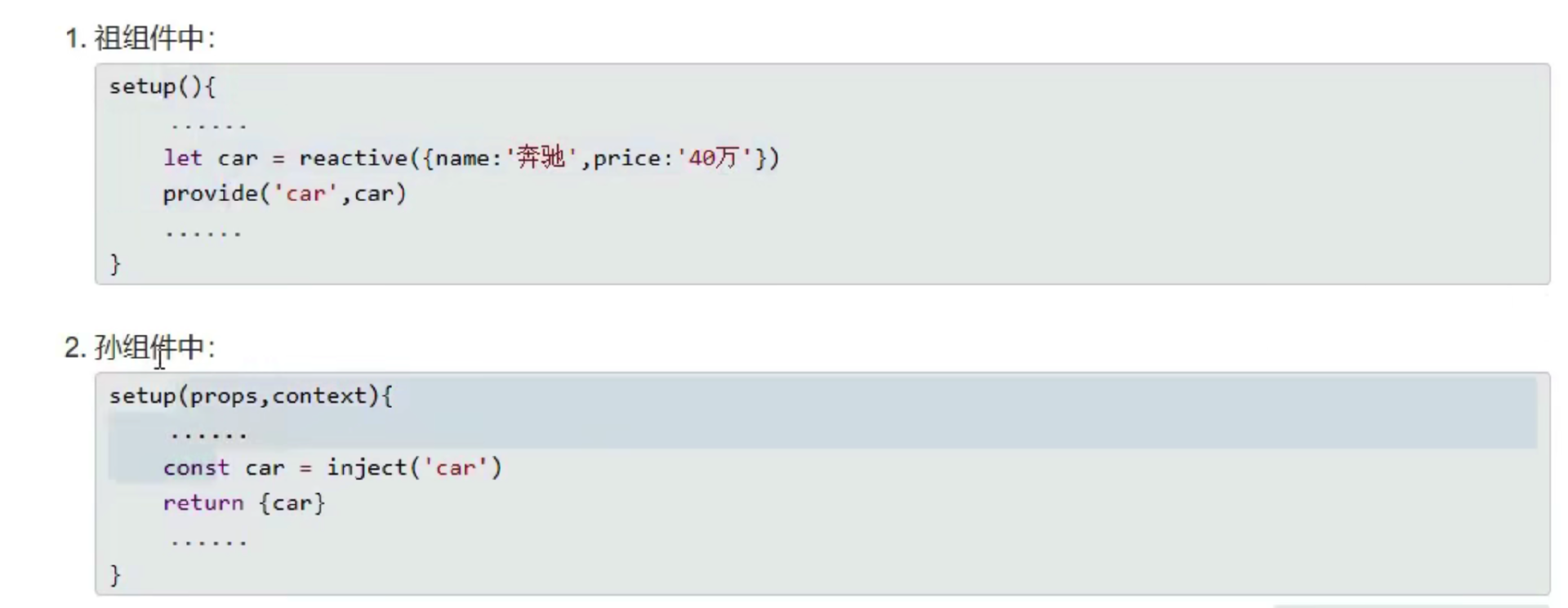 套路: 父组件有一个provide选项来提供数据,孙/后代组件有一个inject选项来开始使用这些数据