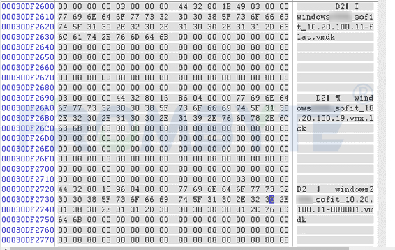 3、北亚企安数据恢复工程师分析底层数据,在自由空间排查被删虚拟机磁盘区域,扫描出大量碎片并重组,但仍缺失部分碎片文件,只能留空。