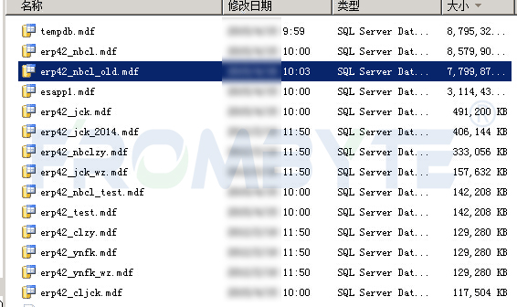 7、检查备份文件,丢失的两个文件仍不存在,只有部分增量备份文件。因erp42_jck.dbf只缺失少量页,从增量备份中查找补上,但仍缺失部分页,无法正常使用。不过通过北亚企安自主开发的数据库解析程序,成功导出该文件中重要的几十张表并导入新建数据库。