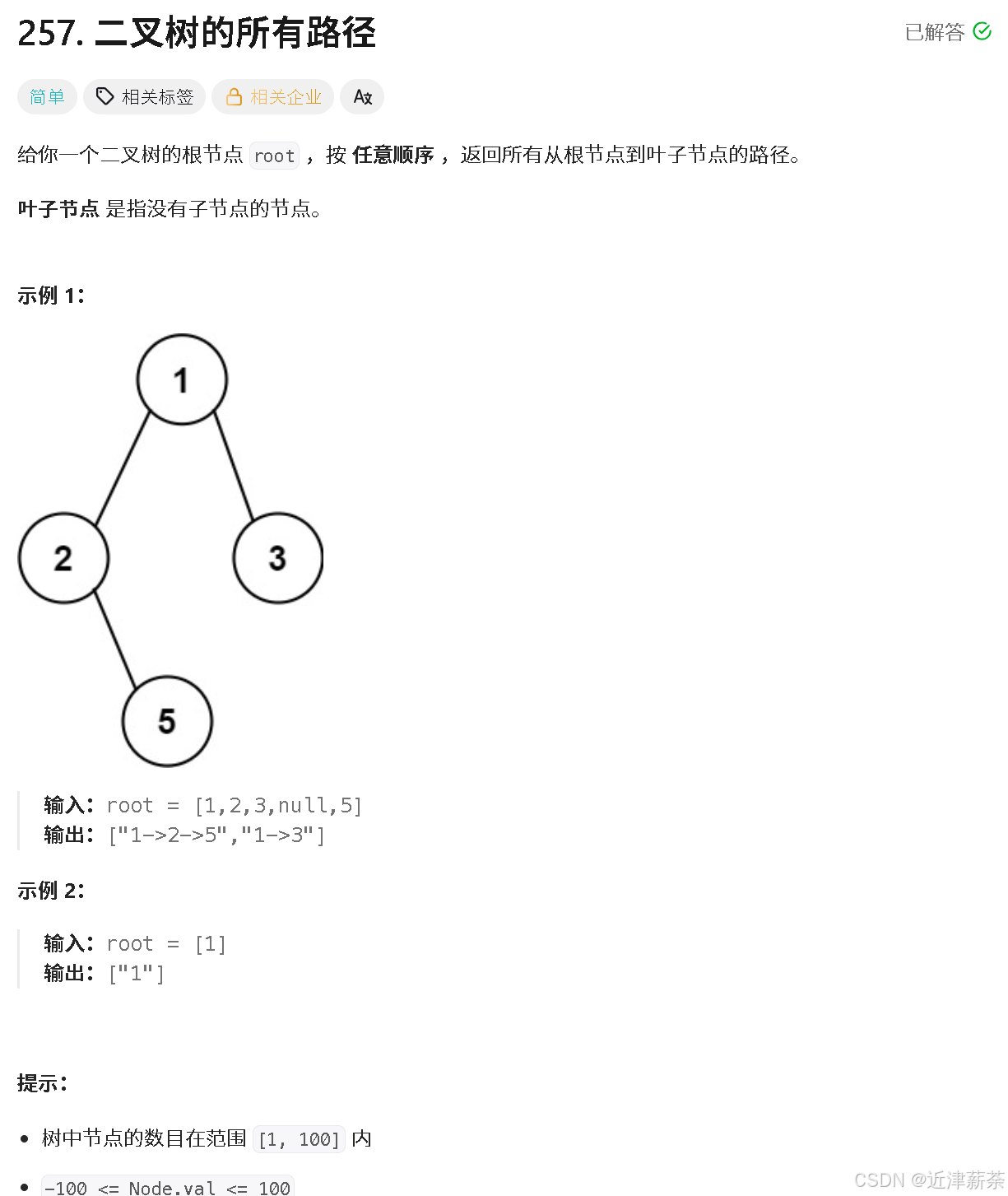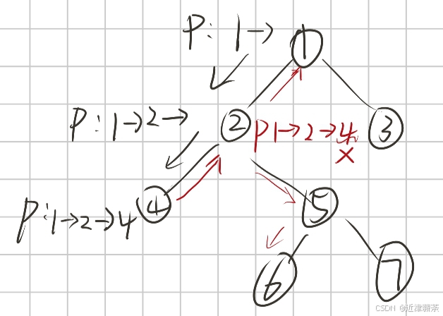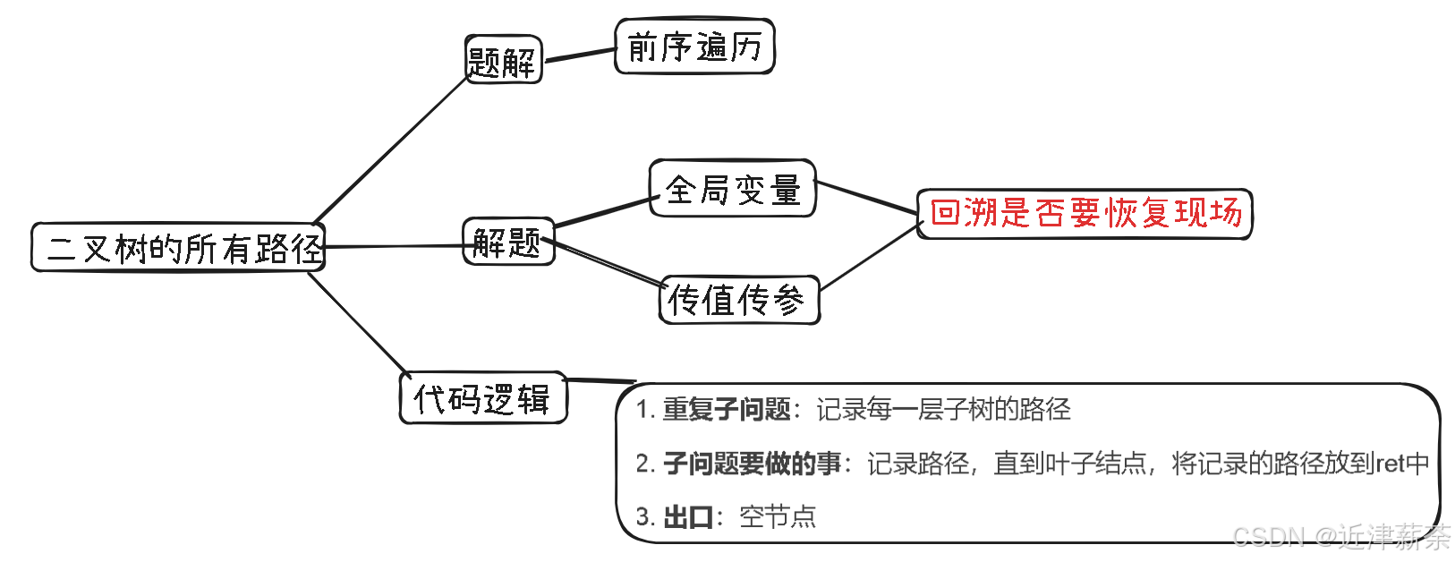 - 子问题要做的事:记录路径,直到叶子结点,将记录的路径放到ret中