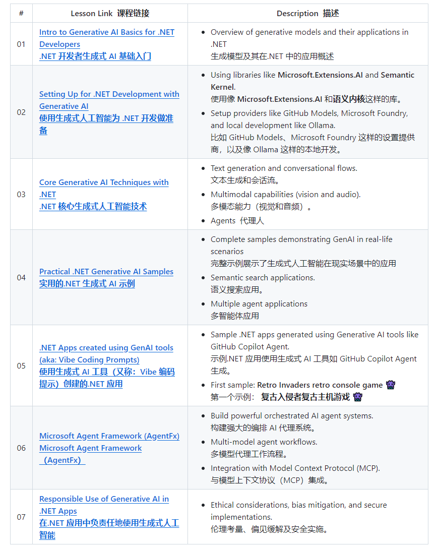 项目简介: Generative-AI-for-beginners-dotnet 是一个微软官方开源且实用课程,教你如何在.NET 中构建生成式人工智能应用。