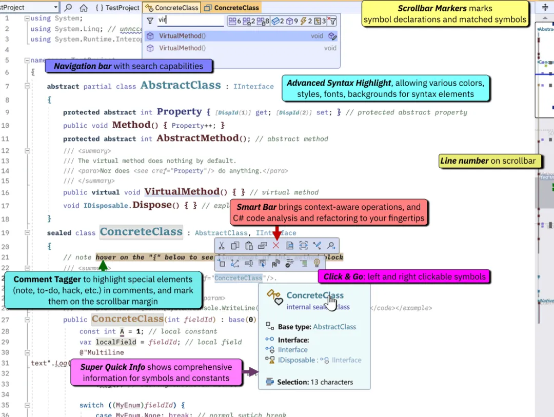 项目简介: Codist 是一个使用 .NET 编写、开源免费的 Visual Studio 扩展插件,致力于为 C# 程序员提供更好的编程体验和生产效率。它不仅强化了语法高亮、快速信息提示、导航栏、滚动条和显示质量,还集成了自动版本号更新、括号自动补全、支持高级编辑功能的智能工具栏、代码分析等功能。