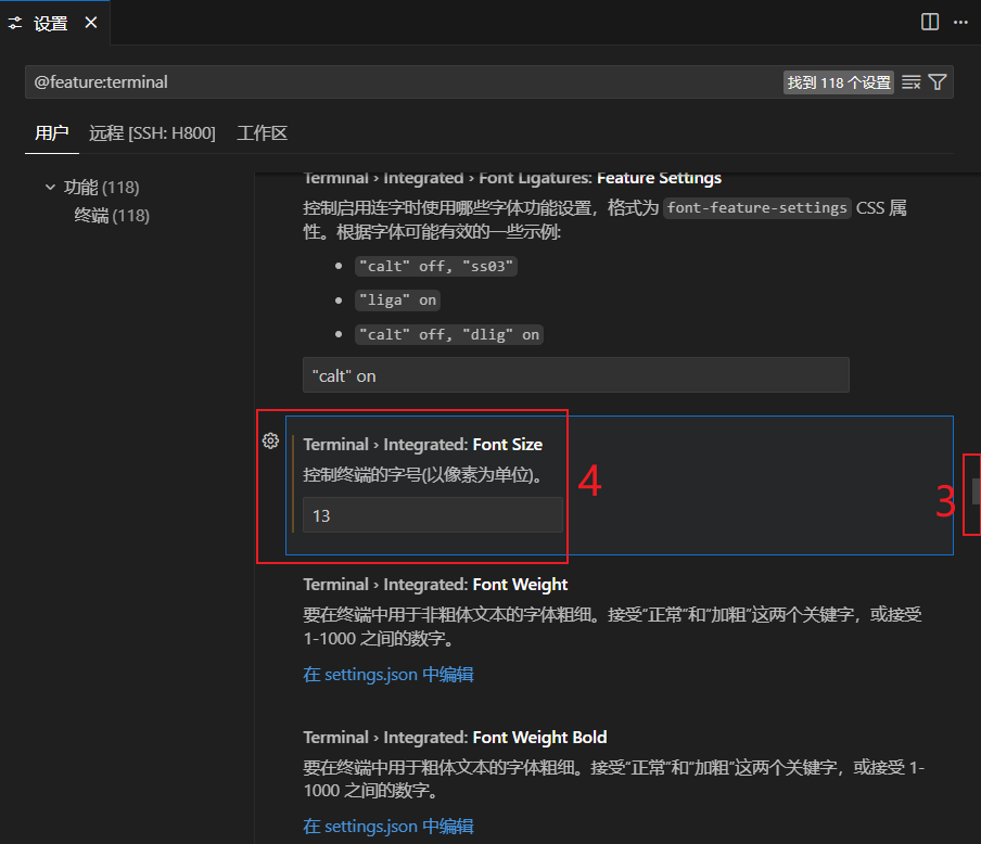 3. 设置终端字体大小