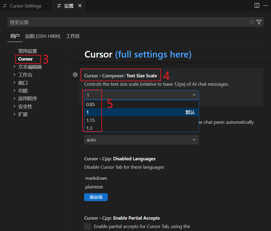 2. 设置Cursor Chat 聊天框字体大小