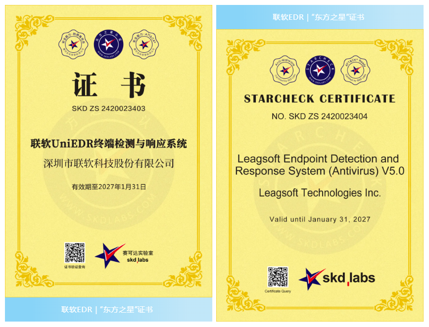 近日,捷报传来,联软科技核心产品联软UniEDR顺利通过赛可达实验室东方之星认证 (认证证书编号:SD ZS 242003403),此次认证明确,其安全能力、防勒索攻击能力均达到国际认可标准,技术规范与产品质量同步契合国际要求,更凭借独特的AI赋能优势,获得国际权威机构的专业背书。
