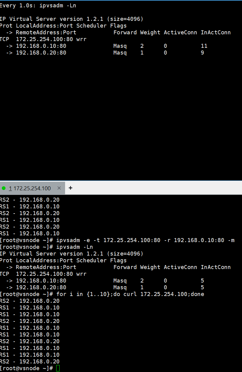 ipvsadm -e -t 172.25.254.100:80 -r 192.168.0.30 -m -w 1