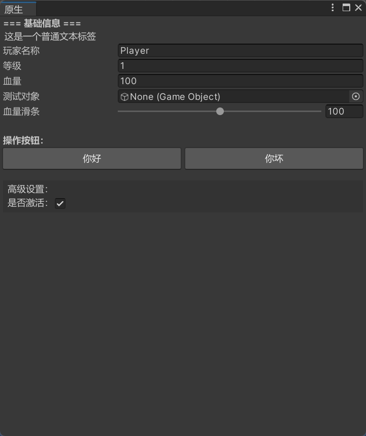 hp = EditorGUILayout.FloatField("血量", hp);