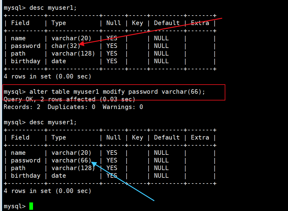 6)修改表的某个列的属性