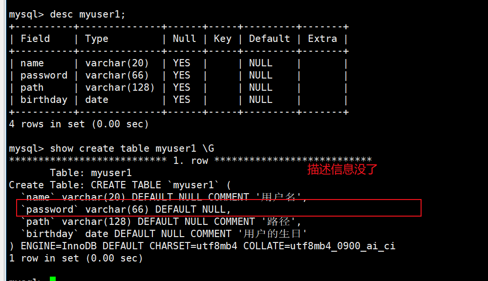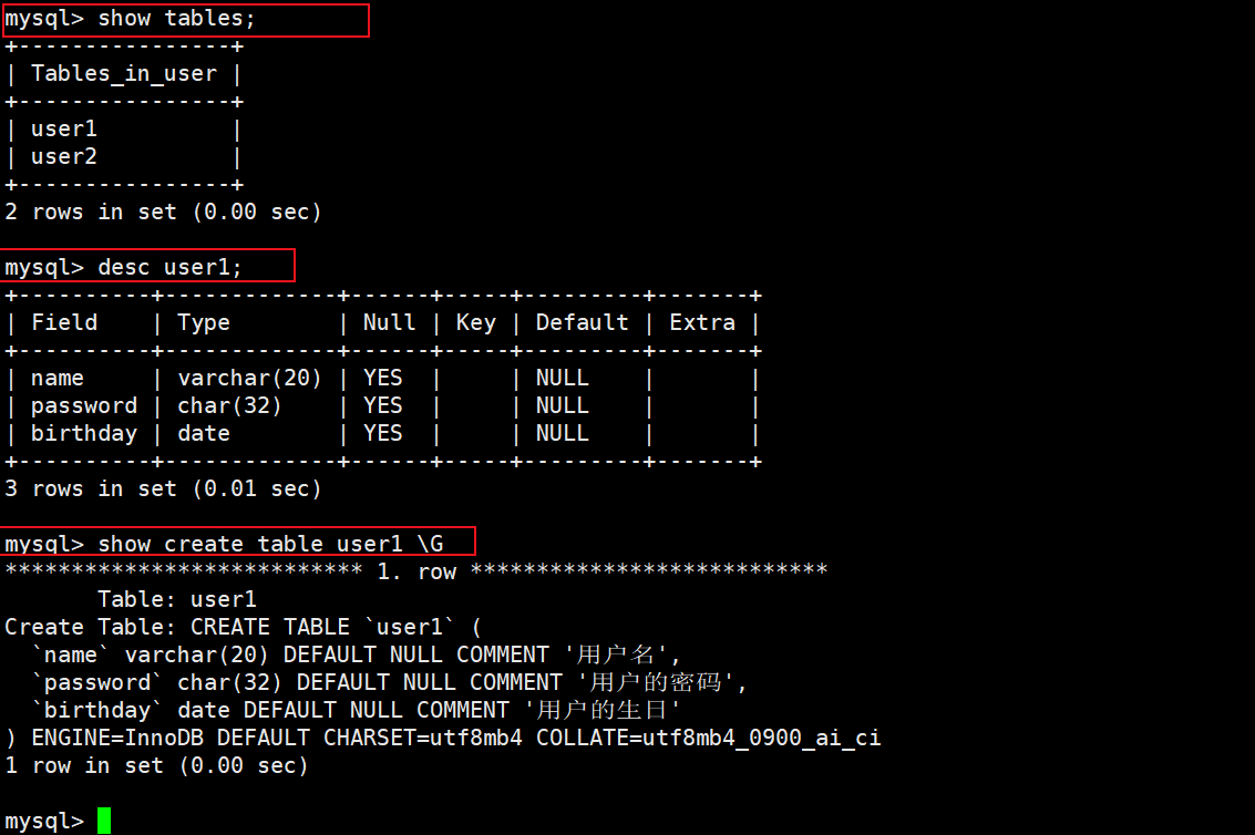 2)查看表信息
