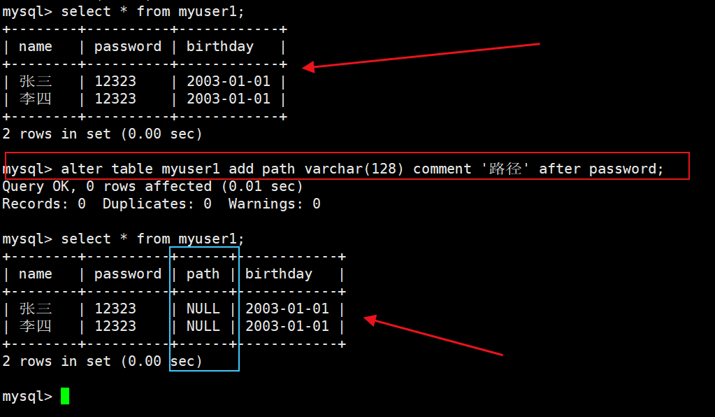 5)对表新增加一列