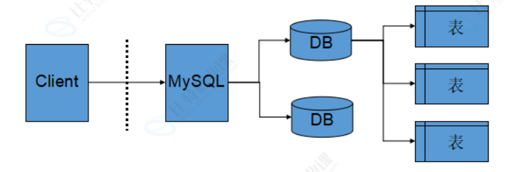 数据库服务器、数据库和表的关系如下: