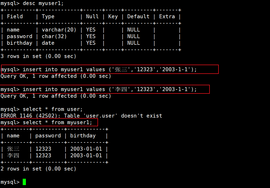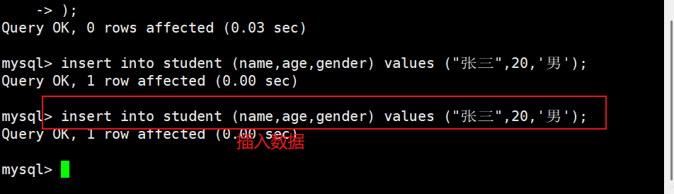 3)插入信息 && 查看插入的信息