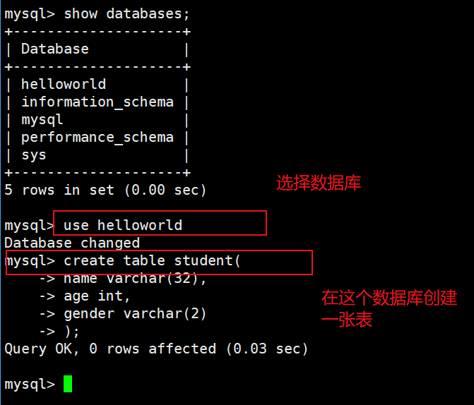 2)选择数据库 && 创建表