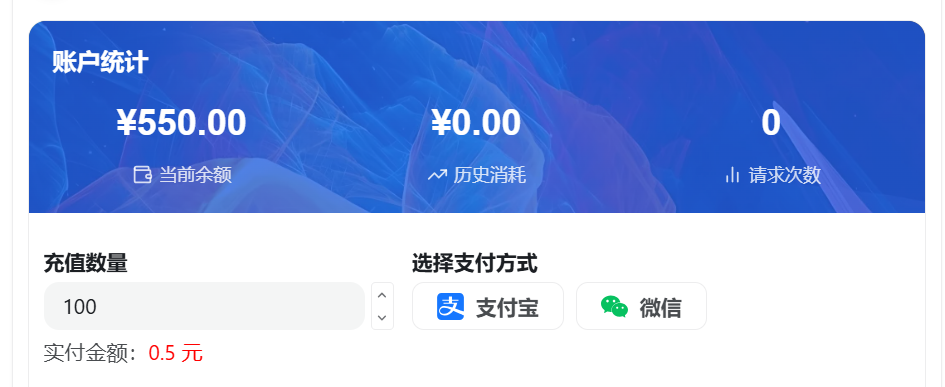 这个注册送500,签到送50,给的额度还是非常多的,就是用量未知,目前还没测试过,大家可用试试。