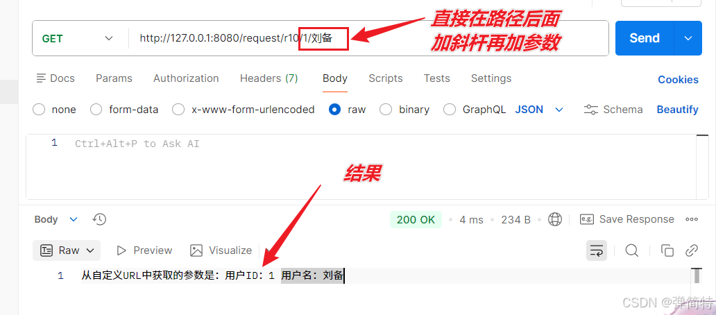 - 请求正文body【该参数称为请求参数】