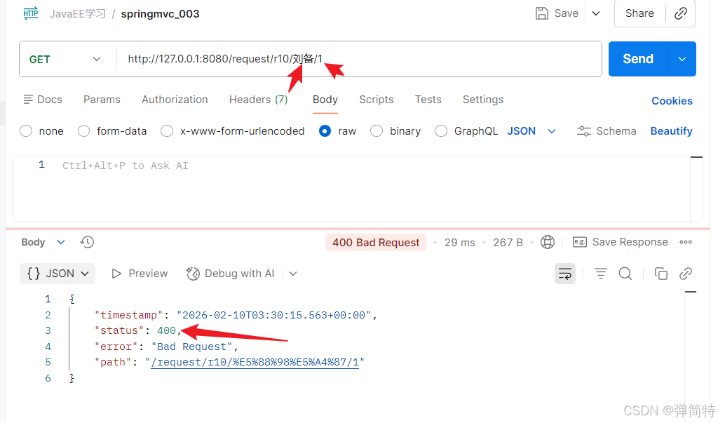 比如:你的前端参数和后端的URL定义不匹配就会报400