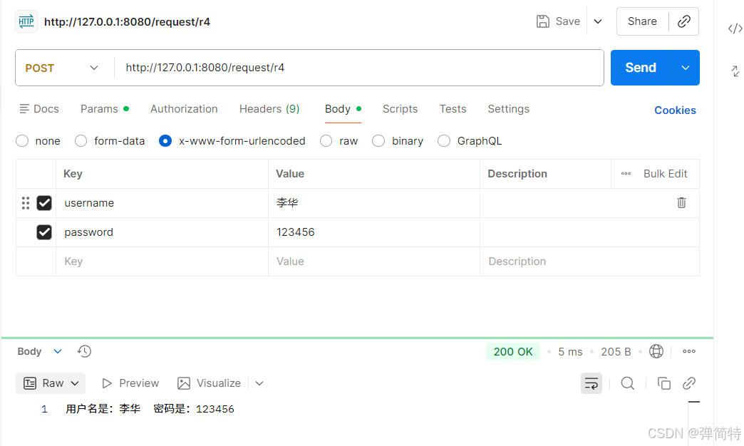 我们使用Postman发送请求和使用客户端发送请求对于后端而言是一样的,