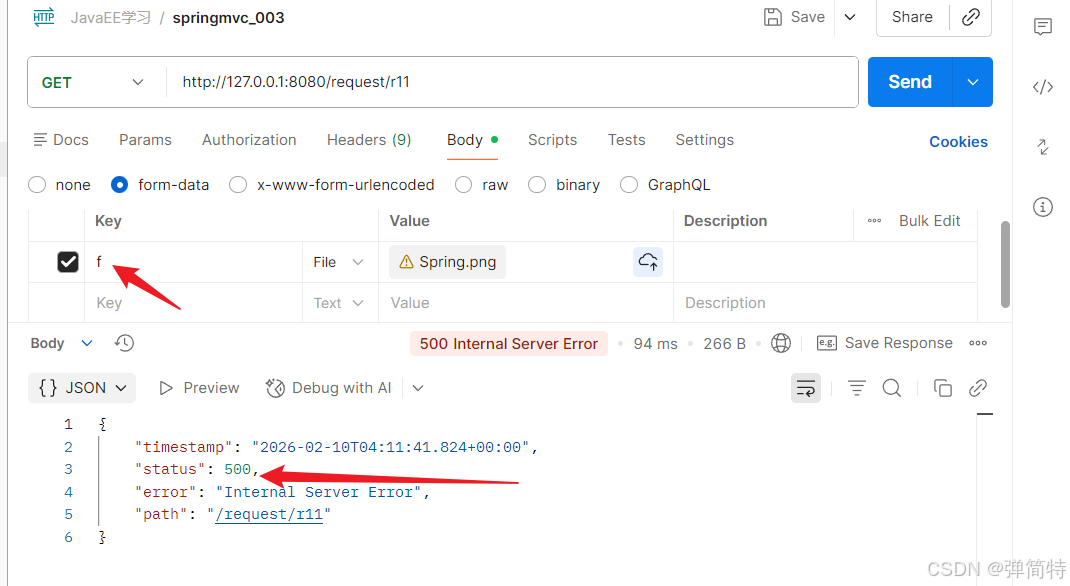 比如我的前端参数不是file而是改为f,那么此时就会报错