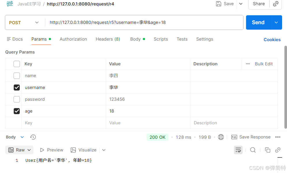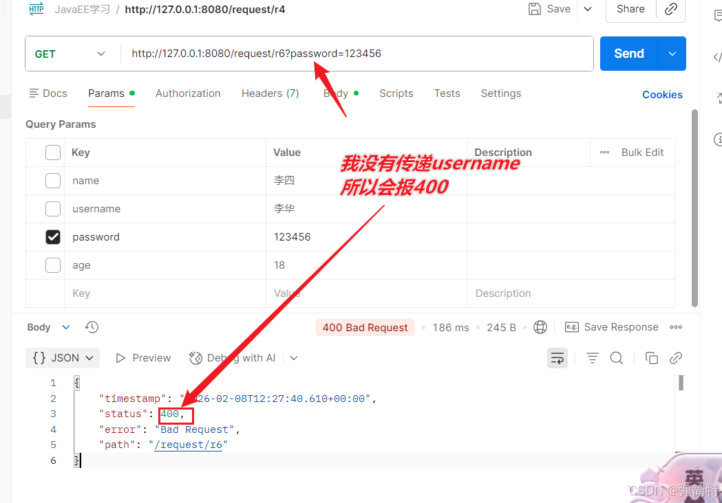 3,经过上述因此我们建议使用包装类型(如Integer、String)接收参数,参数未传递时会赋值为null,避免报错。原因就是我们SpringMVC接受到的参数都是String类型,他回去给你去转,所以对于包装类型,如果转不了的话,那么就是默认为null