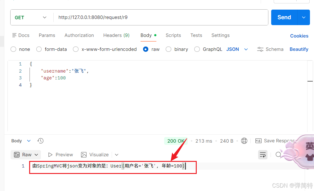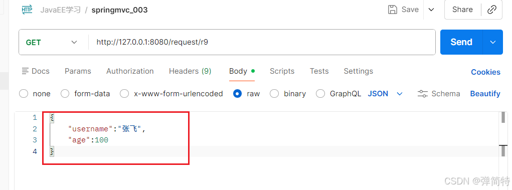 注意:@RequestBody作用于请求正文【就是请求体body】,参数必须写在请求正文中,不能通过URL拼接;去掉@RequestBody则无法接收JSON参数。