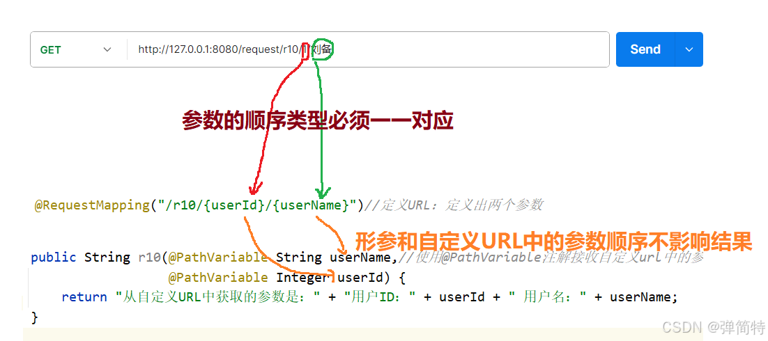 @RequestMapping("/r10/{userId}/{userName}")//定义URL:定义出两个参数