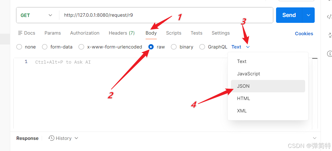点击body->raw->选择json