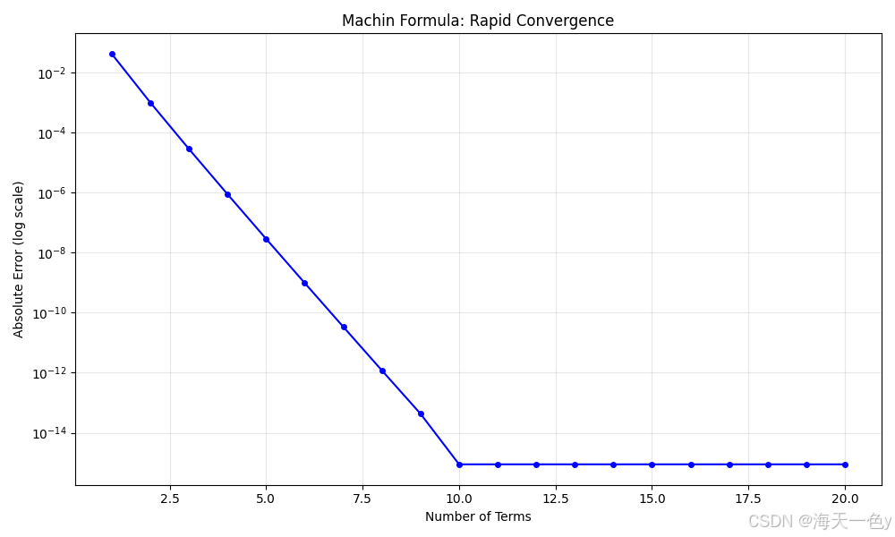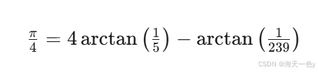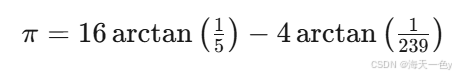 原理:π/4 = 4·arctan(1/5) - arctan(1/239),利用arctan的泰勒展开。