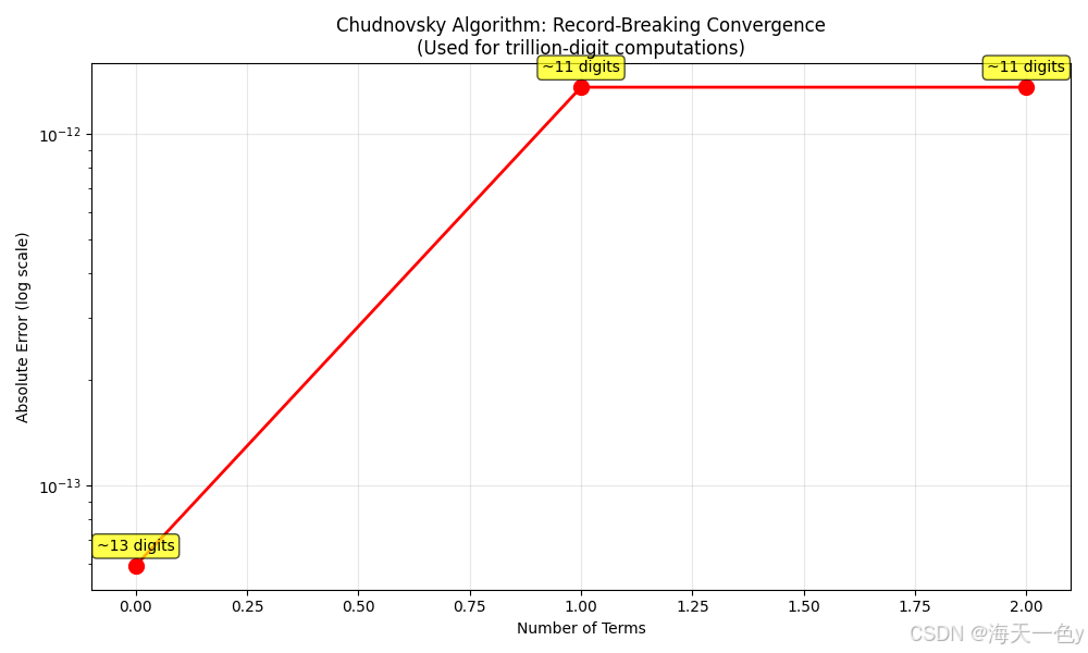 ax.set_title('Chudnovsky Algorithm: Record-Breaking Convergence\n(Used for trillion-digit computations)')