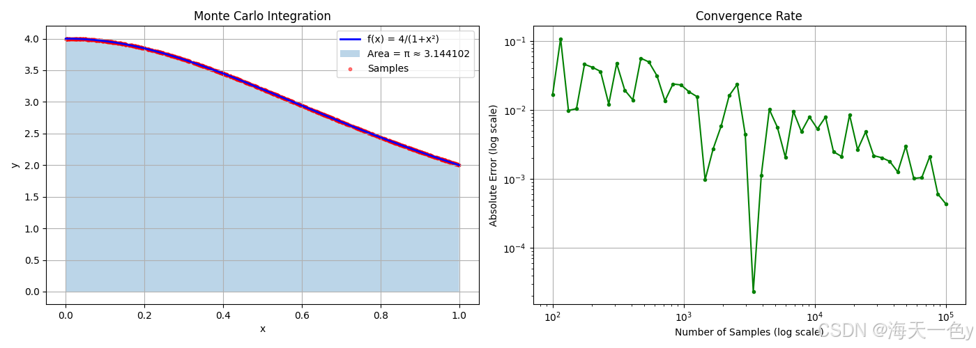 print(f"蒙特卡洛方法: π ≈ {monte_carlo_pi(50000):.10f}")